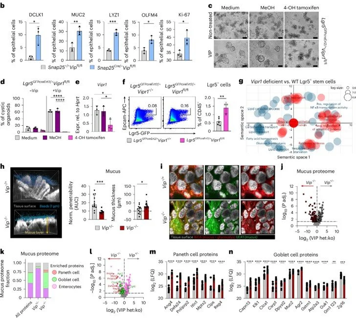Jakob MO, Sterczyk N, Boulekou S, Forster PM, Barleben L, Alzain N, Jarick KJ, Pirzgalska RM, Raposo B, Hansson K, Nyström EEL, Gondrand A, González-Acera M, Leclère PS, Lapson MS, Poggenseier S, Deshpande D, Velleman L, Breiderhoff T, Brunkhorst MF, Schüle AM, Guerra GM, Durek P, Mashreghi MF, Kühl AA, Chu C, Schneider C, Weidinger C, Siegmund B, Nordmann TM, Voehringer D, Patankar JV, Becker C, Birchenough GMH, Veiga-Fernandes H, Ronchi F, Kolesnichenko M, Diefenbach A, Klose CSN. Enteric nervous system-derived VIP restrains differentiation of LGR5(+) stem cells toward the secretory lineage impeding type 2 immune programs. Nat Immunol. 2025 Dec;26(12):2227-2243. doi: 10.1038/s41590-025-02325-1. Epub 2025 Nov 24. PubMed PMID: 41286457.